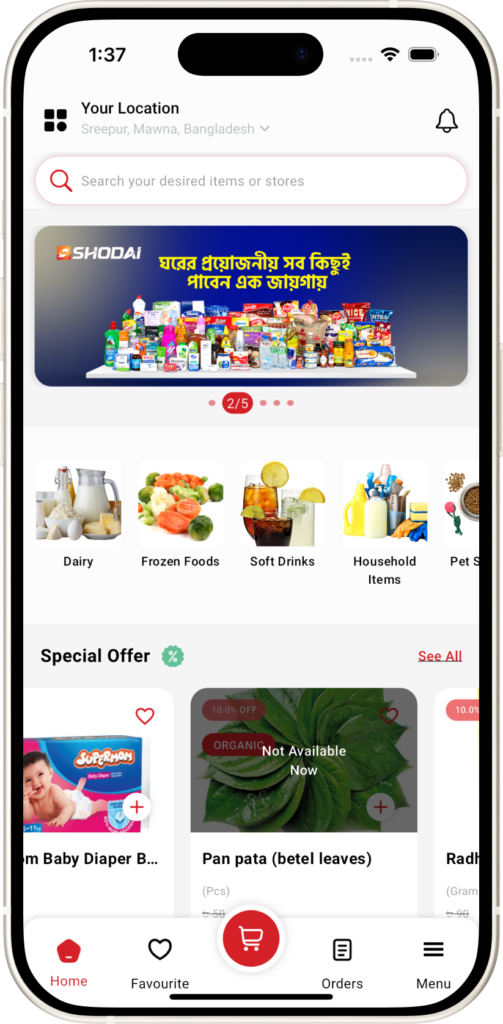 bKash, SSL Commerce, In-App Wallet এবং ক্যাশ অন ডেলিভারিতে অর্ডার সম্পন্ন করতে পারেন।